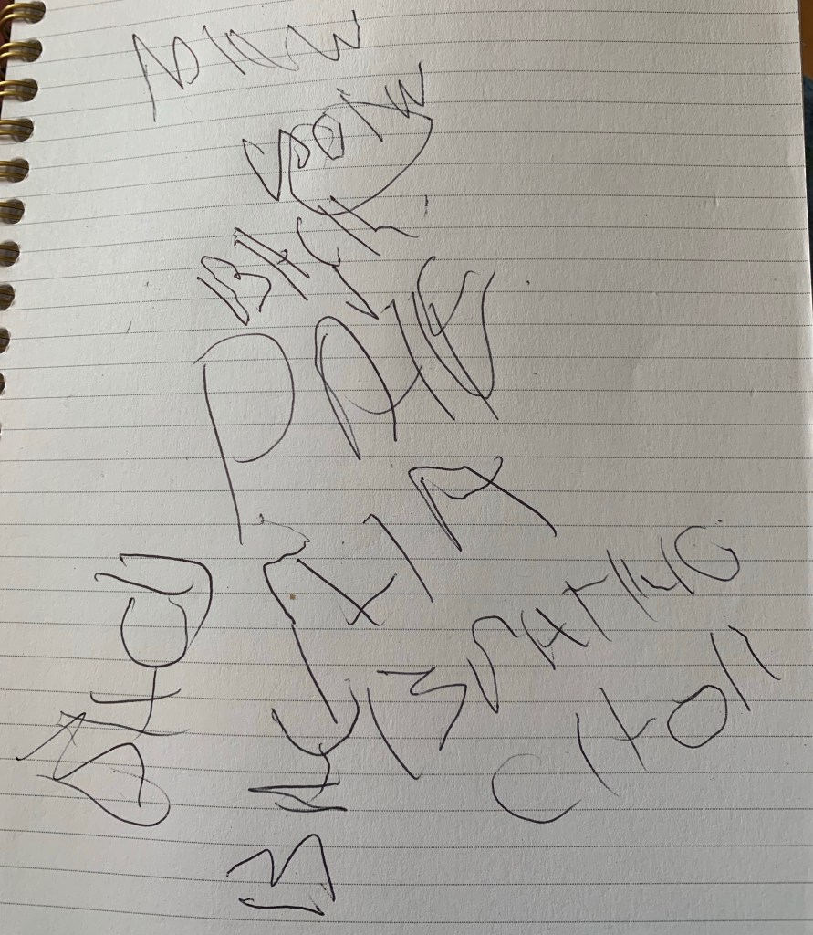 A note while in recovery — still intubated — I scratched out to Danielle, complaining about tubes and pain. Not at all like me, to be sure.
